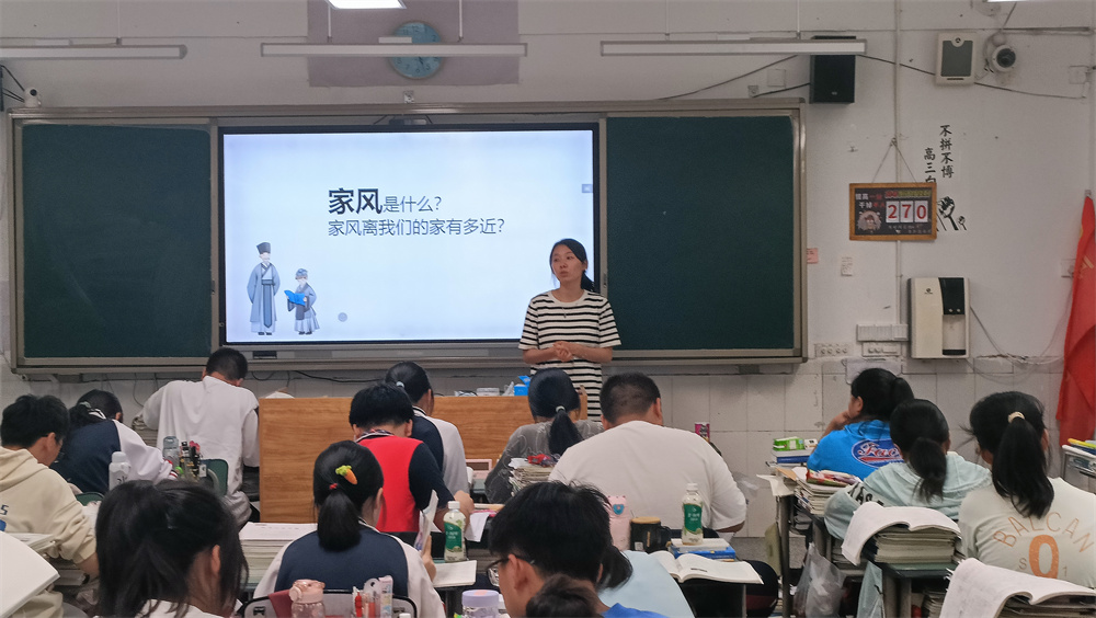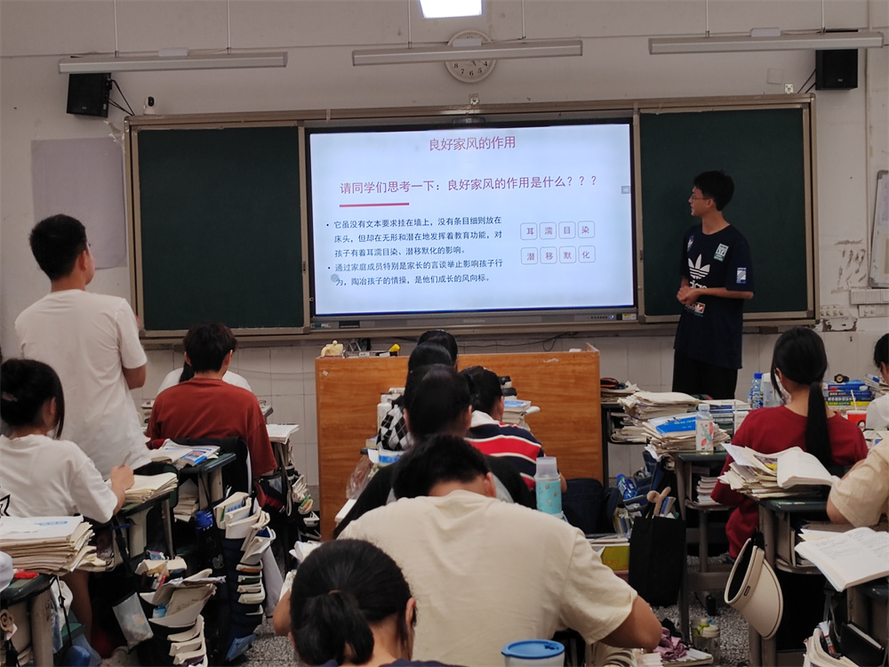 (劉安奉)“家是最小國(guó),國(guó)是千萬家”,家庭是國(guó)家發(fā)展、民族進(jìn)步、社會(huì)和諧的基點(diǎn),是人生成長(zhǎng)的第一課堂,家風(fēng)家教是一個(gè)家庭最寶貴的財(cái)富。為深入貫徹落實(shí)習(xí)近平總書記關(guān)于注重家庭家教家風(fēng)建設(shè)重要論述精神,弘揚(yáng)中華民族傳統(tǒng)美德,賡續(xù)紅色血脈。9月11日,宜賓市南溪一中高2021級(jí)各班組織開展了“傳承優(yōu)良家風(fēng),爭(zhēng)做時(shí)代新人”主題班會(huì)課。