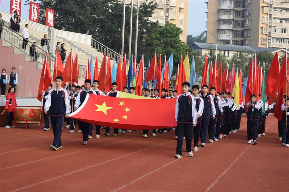 隨著一陣陣堅(jiān)定有力的腳步聲慢慢靠近,國旗方隊(duì)的同學(xué)高摯國旗、校旗,身姿挺拔,氣宇軒昂地從主席臺前走過。隨后,各班方隊(duì)依次入場,接受檢閱。學(xué)生們的表演形式豐富多樣,充分展示了南溪一中學(xué)子的青春力量。青春的氣息在足球場上翻滾,全體師生熱烈的掌聲,把學(xué)校交匯成一片活力的海洋。