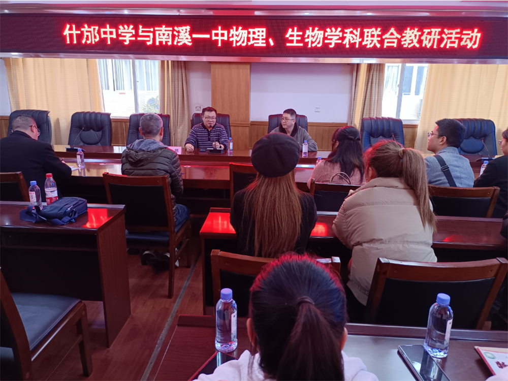 宜賓市南溪一中教科處負責人介紹了學校教學教研基本情況,同時對什邡中學的到來表示熱烈的歡迎。隨后物理和生物分別到不同的分會場進行活動交流。