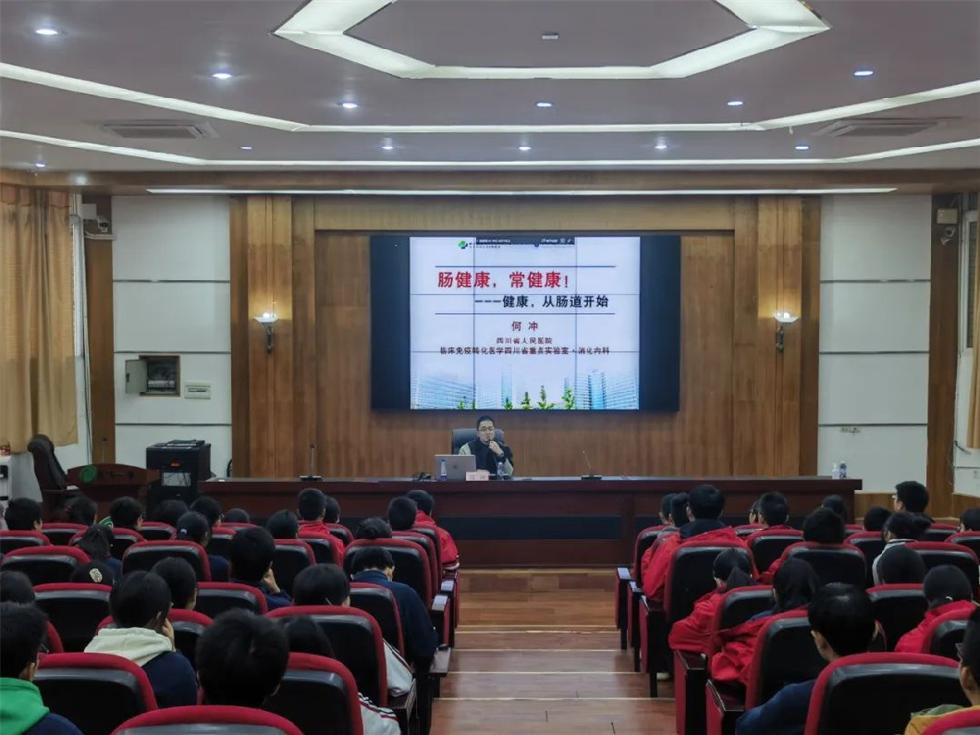 (曾薪蓉)為貫徹落實《教育部等十八部門關(guān)于加強新時代中小學(xué)科學(xué)教育工作的意見》要求,12月14日,“科學(xué)家百人千場進(jìn)校園”活動在宜賓市南溪一中舉行,來自四川省人民醫(yī)院副教授、碩士生導(dǎo)師何沖作了題為《腸健康,常健康!——健康,從腸道開始》專題講座。