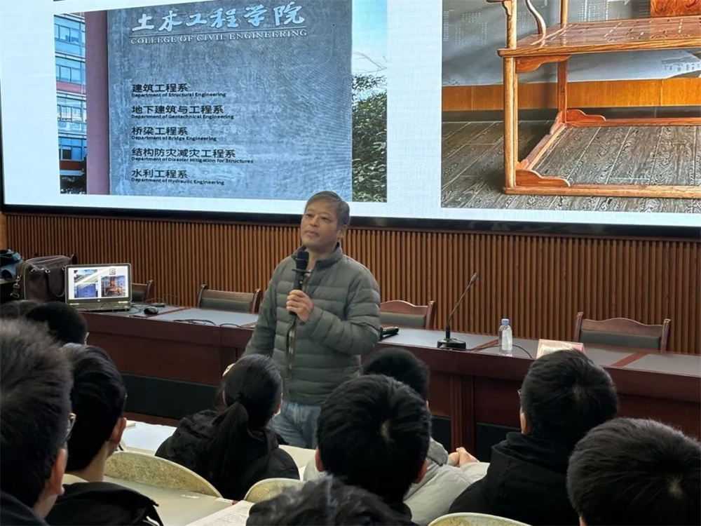 在中和堂,沈水明教授以“《基建大國到基建強(qiáng)國》——從模型設(shè)計(jì)到宏偉建筑”為主題,向同學(xué)們介紹了土木工程學(xué)院的相關(guān)情況,同時(shí)就同濟(jì)大學(xué)的辦學(xué)特色、人才培養(yǎng)等內(nèi)容進(jìn)行了介紹,宣講過程中,沈教授對(duì)宜賓市南溪一中學(xué)子給予了高度贊揚(yáng),并表示期待更多學(xué)子考入同濟(jì)大學(xué)。