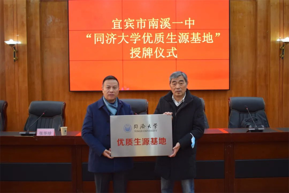 隨后,遲文鐵教授代表同濟(jì)大學(xué)授予宜賓市南溪一中“優(yōu)質(zhì)生源基地”牌匾,學(xué)校黨委副書記、校長余禎銀代表學(xué)校接受榮譽(yù)。