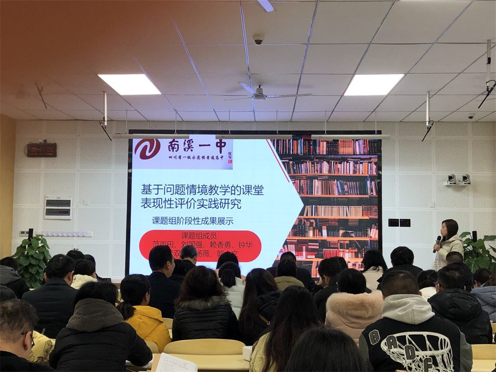 (李雙宇)12月27日,南溪一中地理組《基于情境教學(xué)的課堂表現(xiàn)性評價實踐研究》課題組成員參加了“宜賓市教育科學(xué)研究所省級普教科研課題《基于問題情境的高中地理課程資源開發(fā)與運用實踐研究》子課題階段成果展評”活動。宜賓市教科所副所長張安權(quán)、宜賓市教科所地理教研員胡琴、江安縣師培中心教科室主任羅益成、翠屏區(qū)師培中心教科室主任練富裕、翠屏區(qū)師培中心高中地理教研員曾德付以及各子課題組主研人員參加活動。