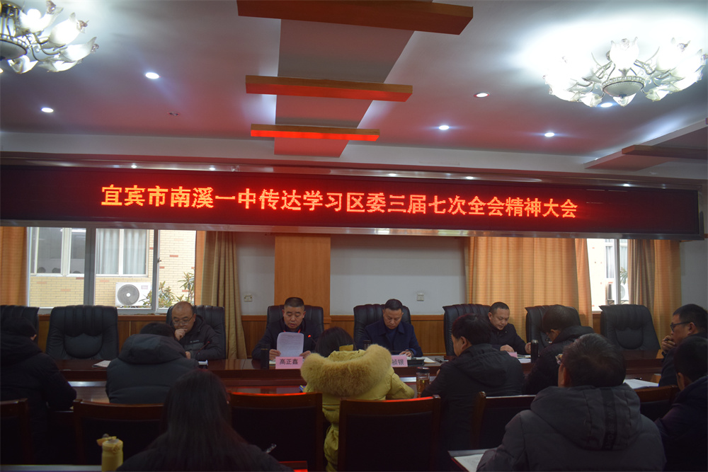 (馬孝容)1月4日,宜賓市南溪一中在勤政樓三樓會議室召開會議,傳達學習區(qū)委三屆七次全會精神,在家黨委班子成員、全體中層干部和黨支部書記參會。
