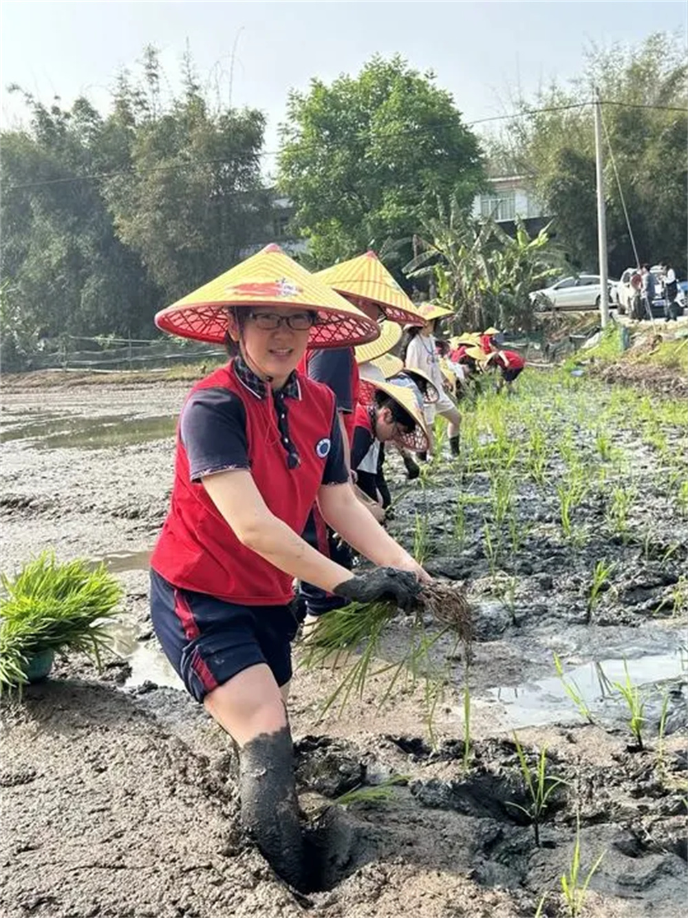 老師們挽起褲腳,踏入田間的泥濘中。這一刻,老師們不再是嚴肅的知識傳授者,而是變成了田間地頭的實踐者。他們的笑聲和談話聲在稻田中回蕩,構(gòu)成了一幅美麗而動人的畫面。他們用自己的行動告訴學(xué)生們,生活不僅僅是書本上的知識,更是實踐中的體驗。他們用自己的實際行動,展示了對于生活的熱愛和對于自然的尊重。