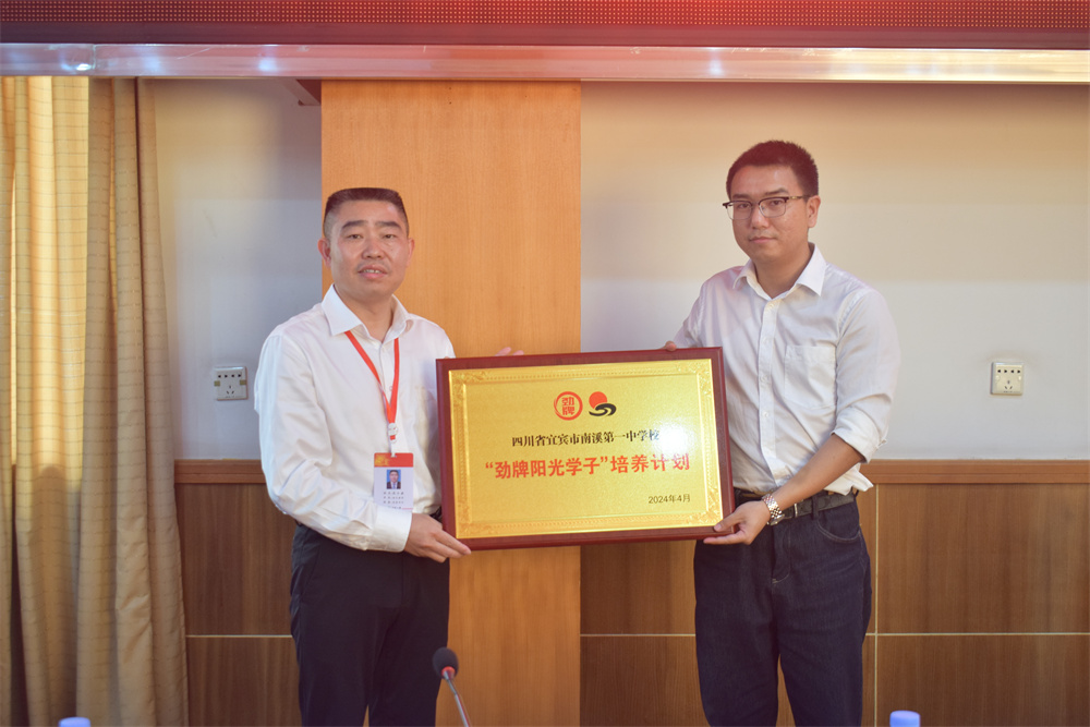 緊接著,南溪酒業(yè)財務(wù)部部長、勁牌基金會區(qū)域代表朱圣榮向南溪一中授牌,并向勁牌陽光導(dǎo)師頒發(fā)了聘書。