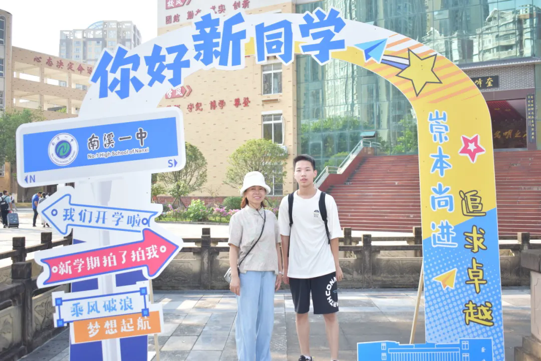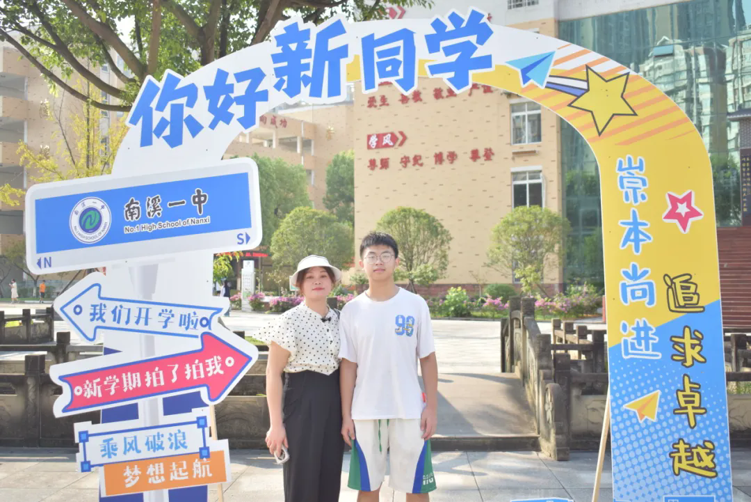 (曾薪蓉)學(xué)校特意為孩子們把儀式感拉滿,從這一刻起,我們都是南溪一中學(xué)子。吹響集結(jié)號,向夢想出發(fā)!南溪一中為了表達(dá)對新生們的熱烈歡迎,特別設(shè)計并建造了一面專屬于他們的拍照打卡墻。這面墻不僅是一個簡單的背景板,更是充滿了學(xué)校對新生們的關(guān)愛和期待。學(xué)校希望通過這種方式,讓新生們感受到自己已經(jīng)成為這個大家庭中的一員,并且能夠留下與校園的首張珍貴合影,記錄下這個美好時刻。