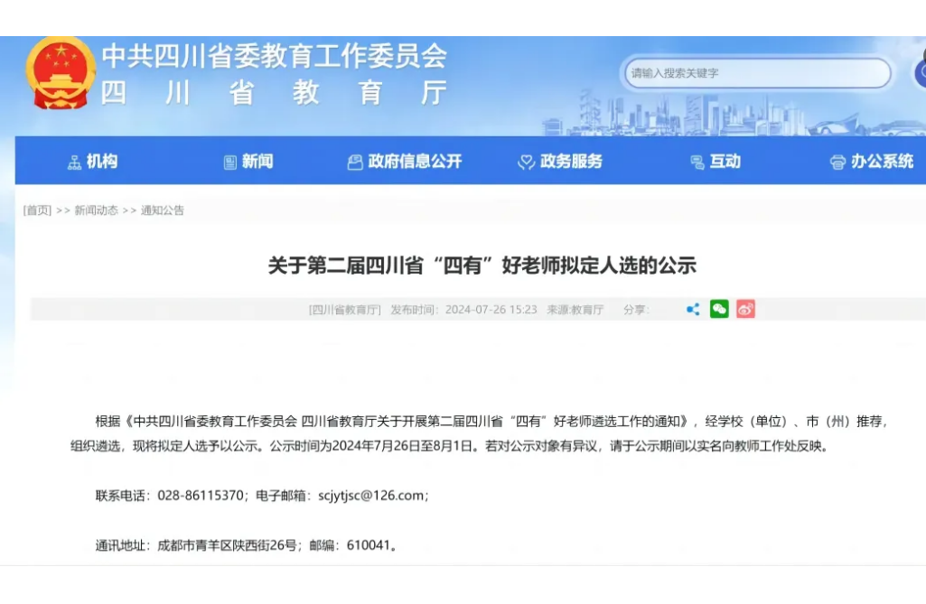 (黨政辦)近日,四川省教育廳網(wǎng)站公示了第二屆四川省“四有”好老師擬定人選,宜賓市南溪一中朱小紅老師榜上有名!