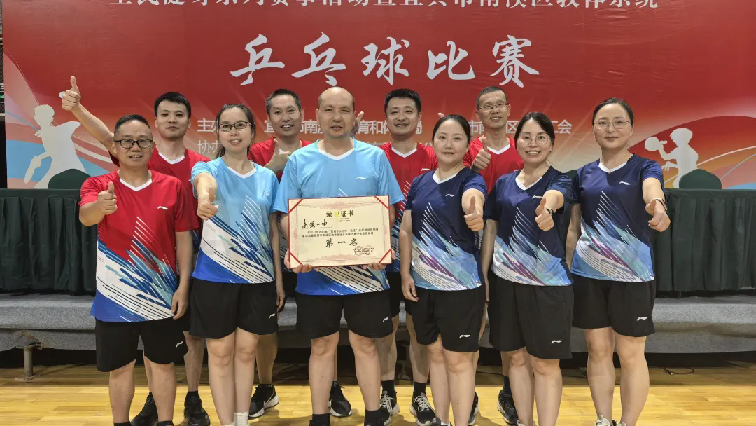 (校工會)在剛剛結(jié)束的2024年宜賓市南溪區(qū)教體系統(tǒng)乒乓球團體賽中,南溪一中乒乓球代表隊發(fā)揚“奎冠群星 勇攀高峰”的奎峰精神,奮勇拼搏,奪得團體賽冠軍。