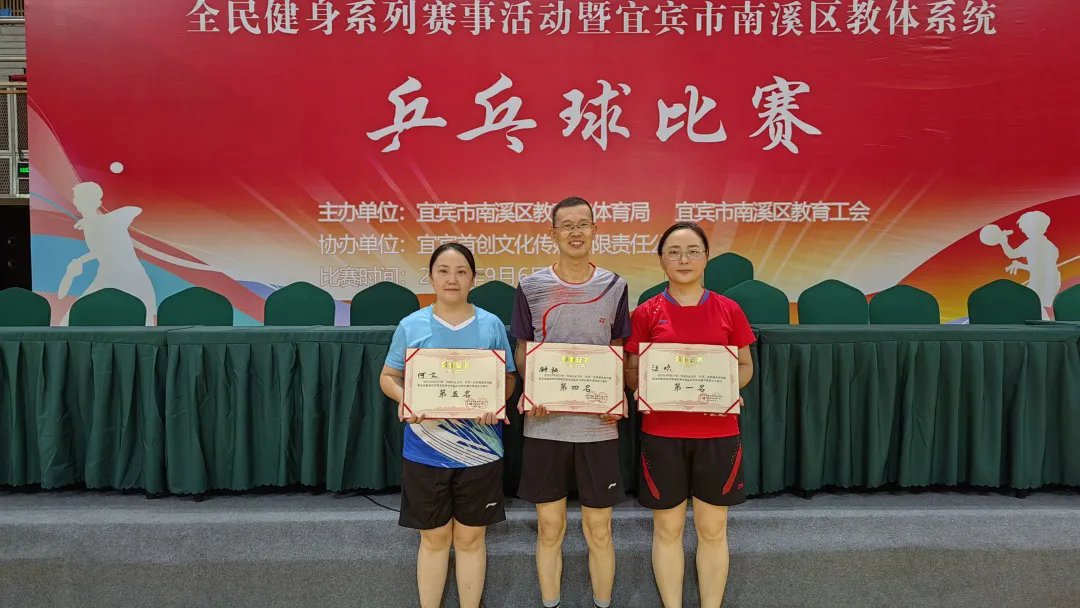在剛剛結(jié)束的2024年宜賓市南溪區(qū)教體系統(tǒng)乒乓球比賽中,南溪一中汪歡老師奪得女子單打冠軍,鐘標(biāo)老師奪得男子單打第四名,何艾老師奪得女子單打第五名!!