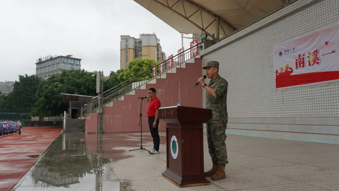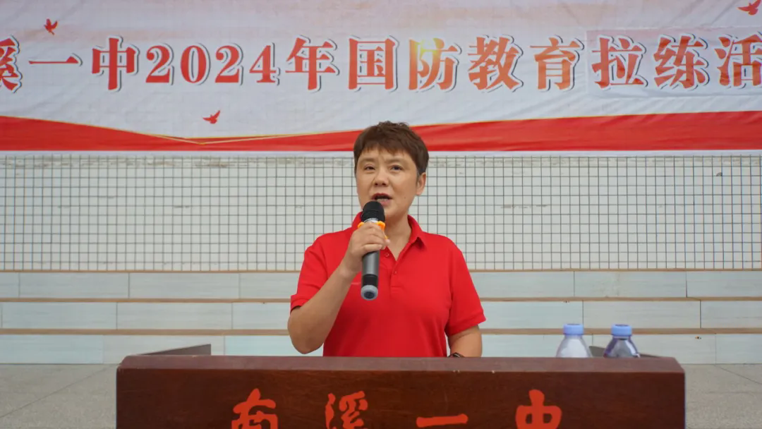 南溪一中黨委委員、副校長張華珍老師發(fā)表致辭。她強調(diào)了國防教育的重要性,并鼓勵同學們珍惜這次拉練機會,增強愛國情懷和集體榮譽感。