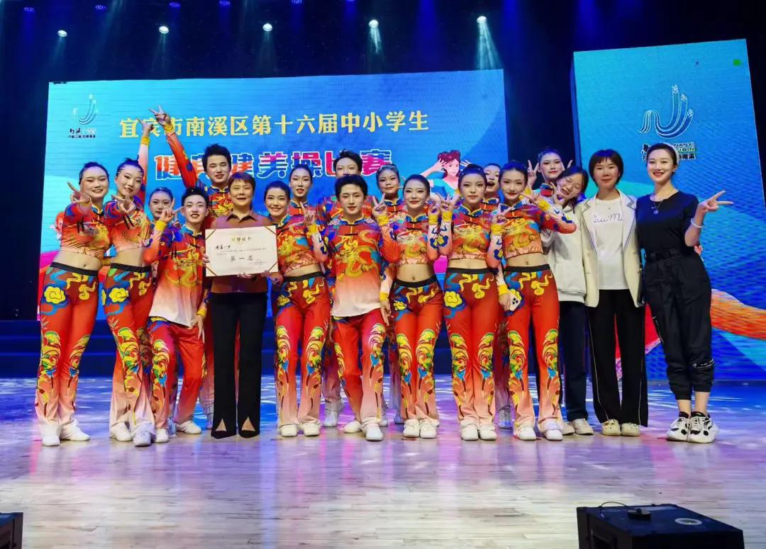 在南溪區(qū)第十六屆中小學(xué)生健身健美操比賽中,南溪一中參賽隊?wèi){借《國韻?少年傳》榮獲高中組第一名!