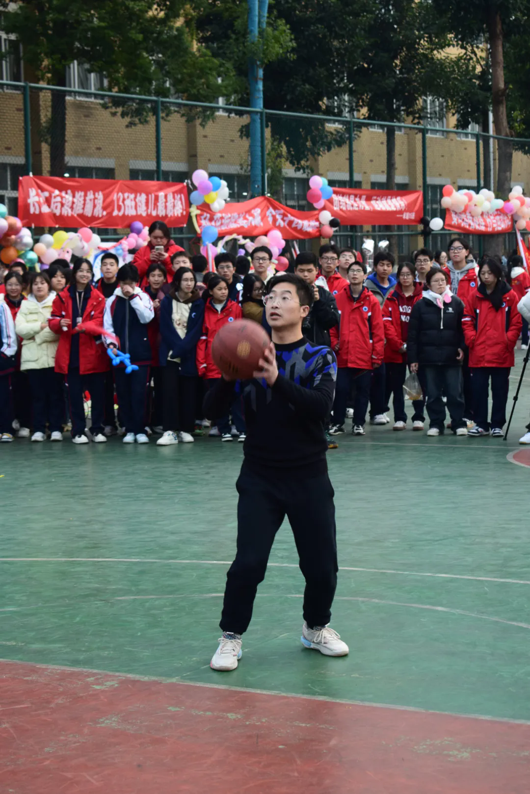 投籃比賽吸引了眾多籃球愛好者的參與。比賽中,老師們展示了各自的投籃技巧,有的老師精準(zhǔn)命中,贏得了陣陣掌聲;有的老師雖然未能命中,但依然堅持到最后,展現(xiàn)了不屈不撓的精神。