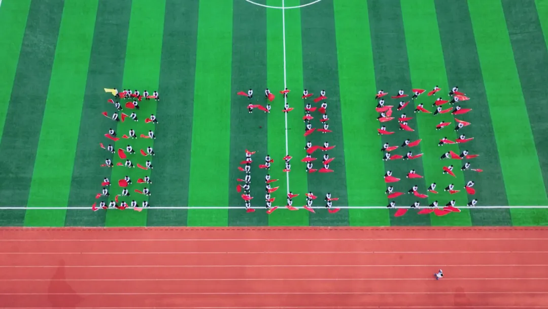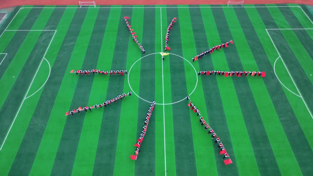 全體學(xué)生共同跳起了韻律健身操,冬奧會(huì)主題曲《一起向未來(lái)》的旋律響徹足球場(chǎng)上空,激發(fā)了大家的熱情和活力。