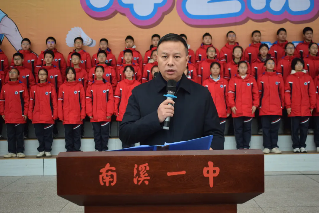 南溪區(qū)教體局黨委書(shū)記、局長(zhǎng)趙敏發(fā)表了講話,他代表區(qū)教體局,向本次體育藝術(shù)節(jié)的開(kāi)幕表示熱烈的祝賀!向精心籌備此次活動(dòng)的全體師生表示衷心的感謝!向全體運(yùn)動(dòng)員、裁判員和所有參與活動(dòng)的同學(xué)們表示誠(chéng)摯的問(wèn)候!他希望大家盡情揮灑汗水、釋放激情、展現(xiàn)自我,在體育和藝術(shù)的交融中,感受生命的活力與美好,共同書(shū)寫(xiě)南溪一中五育并舉的新篇章。