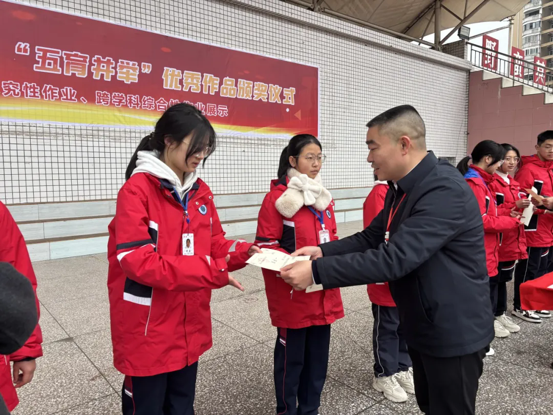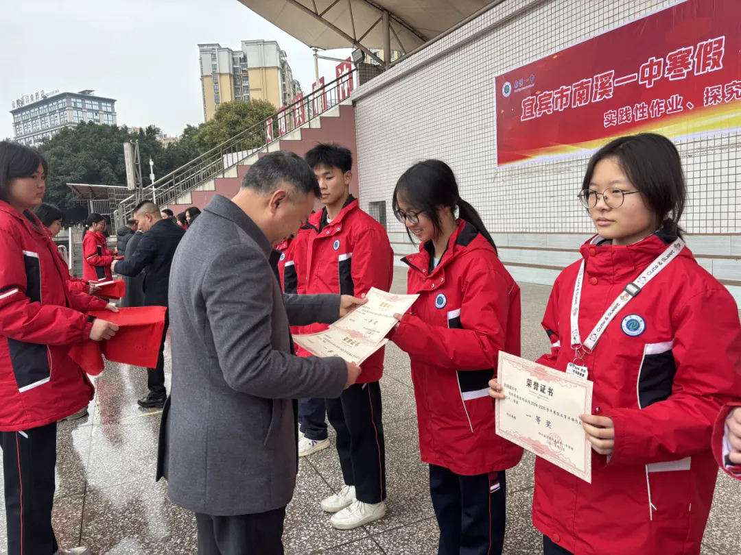 (曾薪蓉)2月24日,南溪一中校園內(nèi)洋溢著熱烈而喜悅的氛圍,學(xué)校舉行了寒假“五育并舉”優(yōu)秀作品頒獎(jiǎng)儀式,此次頒獎(jiǎng)儀式聚焦于實(shí)踐性作業(yè)、探究性作業(yè)以及跨學(xué)科綜合性作業(yè)三大類別,全面展示了學(xué)生們?cè)诤倨陂g豐富多彩且成果豐碩的學(xué)習(xí)與實(shí)踐經(jīng)歷,進(jìn)一步推動(dòng)了學(xué)校五育并舉教育理念的深入落實(shí)。