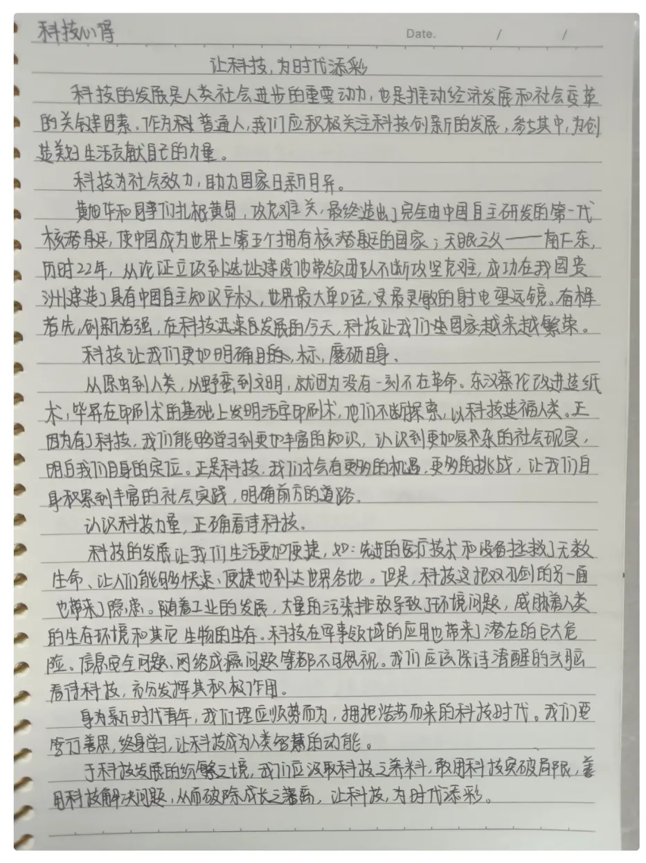 探究性作業(yè)成果同樣碩果累累。同學(xué)們認(rèn)真遵循寒假生活指南,扎實(shí)完成各學(xué)科的復(fù)習(xí)與預(yù)習(xí)任務(wù),不少學(xué)生還主動(dòng)進(jìn)行學(xué)科拓展和研究性學(xué)習(xí);2 - 3部中英文名著名篇閱讀讓同學(xué)們沉浸在經(jīng)典文學(xué)的魅力之中,從《三國(guó)演義》的群雄逐鹿到《水滸傳》的俠肝義膽,從《朝花夕拾》的溫情回憶到《老人與!返膱(jiān)韌不拔,同學(xué)們通過撰寫閱讀心得,深刻剖析作品內(nèi)涵,提升了文學(xué)素養(yǎng)。同時(shí),科技閱讀和新聞閱讀拓寬了同學(xué)們的知識(shí)邊界,對(duì)前沿科技動(dòng)態(tài)和社會(huì)熱點(diǎn)事件的關(guān)注與思考,讓他們緊跟時(shí)代步伐。