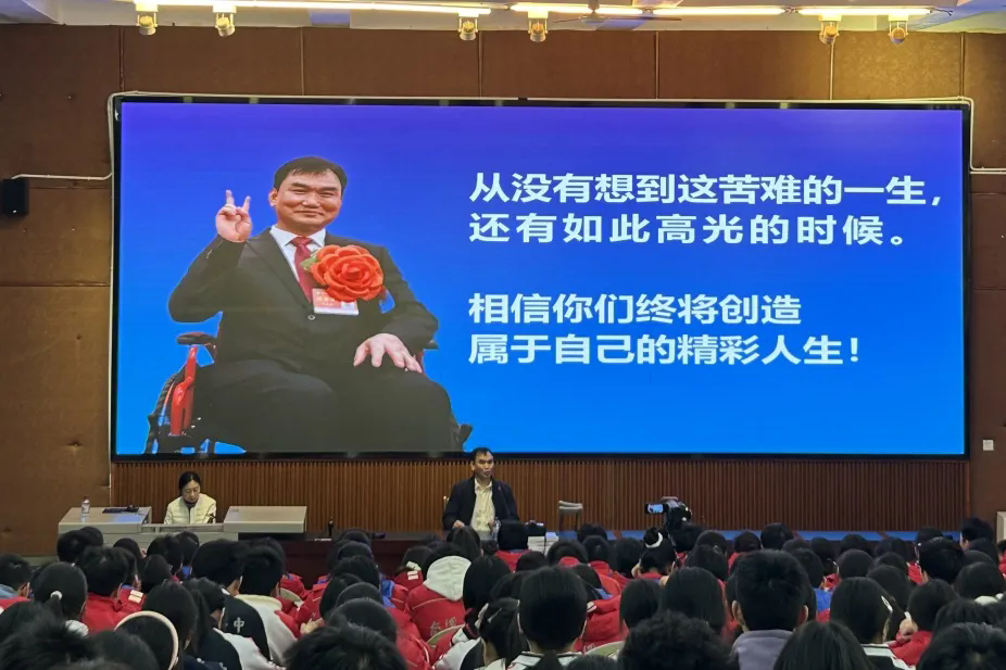 王龍奎,這位來自宜賓市江安縣江安鎮(zhèn)紅巖村的50歲黨員,有著令人敬佩的人生經(jīng)歷。20歲時(shí),一場意外讓他高位截癱,生活陷入絕境。癱瘓臥床17年后終于“重新站了起來”。38歲的他重返高中校園,憑借頑強(qiáng)的毅力和奮斗考入大學(xué)、自主創(chuàng)業(yè),榮獲“全國自強(qiáng)模范”稱號(hào)。他的故事,是一部與命運(yùn)頑強(qiáng)抗?fàn)、不斷書寫輝煌的傳奇;他的經(jīng)歷,讓同學(xué)們看到,即便身處絕境,也能憑借頑強(qiáng)意志改寫命運(yùn)。“支持我向前走的是對(duì)生活的熱愛和對(duì)未來的希望,我不想被命運(yùn)束縛,我要靠自己的努力去創(chuàng)造價(jià)值。”王龍奎先生充滿力量的話語讓同學(xué)們深受觸動(dòng),現(xiàn)場響起熱烈的掌聲。