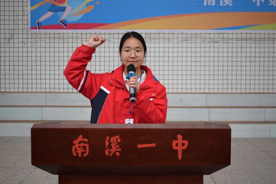 學(xué)生代表領(lǐng)誓,同學(xué)們鏗鏘的誓言在朝陽下蓬勃生長。