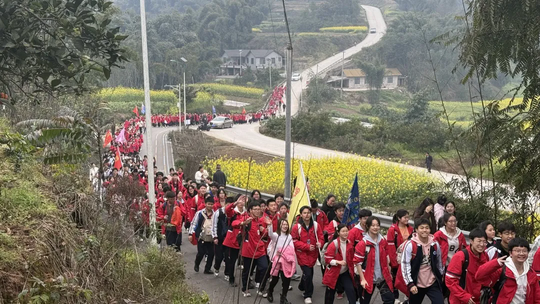 歸程時,雖腳步疲憊,但依然堅定。教育不是裝滿水桶,而是點燃火焰。今天的勵志拉練,是同學(xué)們?nèi)松L征的縮影。希望大家永遠(yuǎn)記得,那些互相攙扶的溫暖,那些咬牙堅持的勇氣,那些在春日里綻放的芳華。(撰稿人:曾薪蓉 審稿人:駱關(guān))