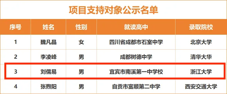 經(jīng)過上級團(tuán)委的審核和四川省青少年發(fā)展基金會(huì)的復(fù)審,南溪一中2024年優(yōu)秀畢業(yè)生劉儒易同學(xué),憑借其出色的綜合素質(zhì),脫穎而出,成為宜賓市唯一一位入選“中國茅臺(tái)·國之棟梁”本碩博優(yōu)才計(jì)劃(本科生)項(xiàng)目的學(xué)生。獲10000元資金支持。
