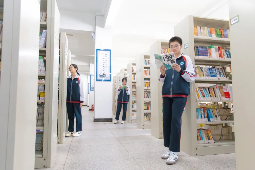圖書館二、三樓的四間學生閱覽室,5000余冊圖書期刊化作語文與英語閱讀課的舟楫,帶領(lǐng)學生穿越語言的迷霧,在經(jīng)典中感受文字的韻律與思想的力量;崇德樓、崇志樓、崇學樓的連廊處,奎峰書吧如散落的珍珠,7000余冊圖書構(gòu)筑起開放式的閱讀港灣,讓課間的片刻停留都成為與文字的浪漫邂逅。