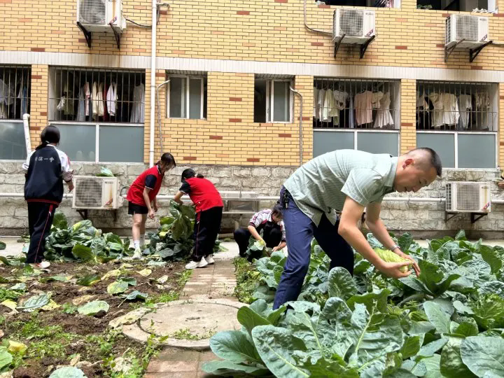同學(xué)們勤勞的身影穿梭其中,有的手持小鋤頭,仔細(xì)分辨著菜苗與雜草,小心翼翼地將雜草連根刨起;采摘的同學(xué)則穿梭在菜畦間,輕輕摘下成熟的蔬菜,如同采摘著屬于自己的榮耀;還有的同學(xué)鼓足力氣,揮動(dòng)沉重的大鋤頭,讓板結(jié)的土壤漸漸變得松軟細(xì)碎。那一雙雙勤勞的手,讓這片承載著希望的土地,始終保持著整潔與美好。這不僅是對(duì)勞動(dòng)成果的珍視,更是對(duì)這片土地的尊重。