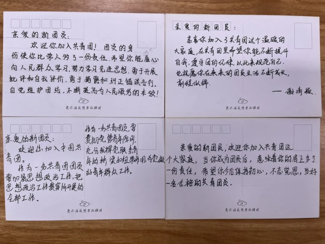 在“寄語(yǔ)傳薪火”環(huán)節(jié),團(tuán)委老師們提前將老團(tuán)員精心撰寫(xiě)的寄語(yǔ)卡片放置在新團(tuán)員座位上。一句句飽含期許的話語(yǔ),傳遞著“愛(ài)國(guó)、進(jìn)步、民主、科學(xué)”的“五四精神”,承載著共青團(tuán)精神的接力與傳承。新團(tuán)員們翻開(kāi)卡片,字里行間的勉勵(lì)與祝福,讓他們深切感受到了團(tuán)組織的悉心關(guān)懷。