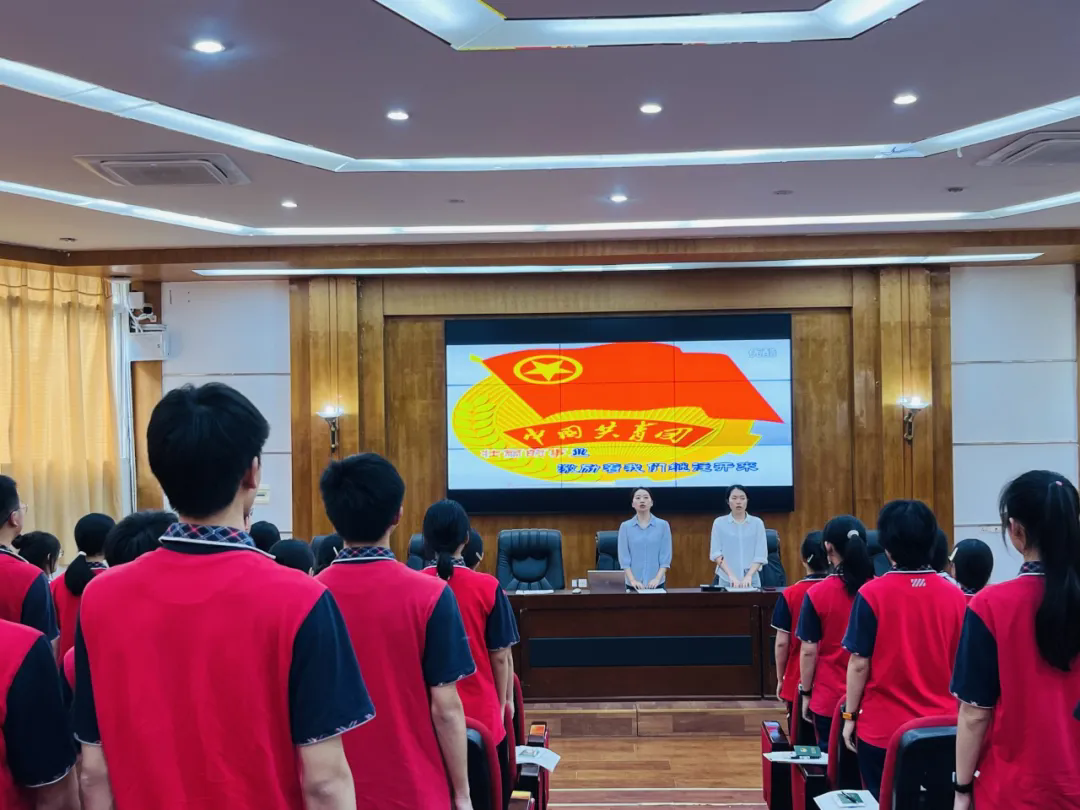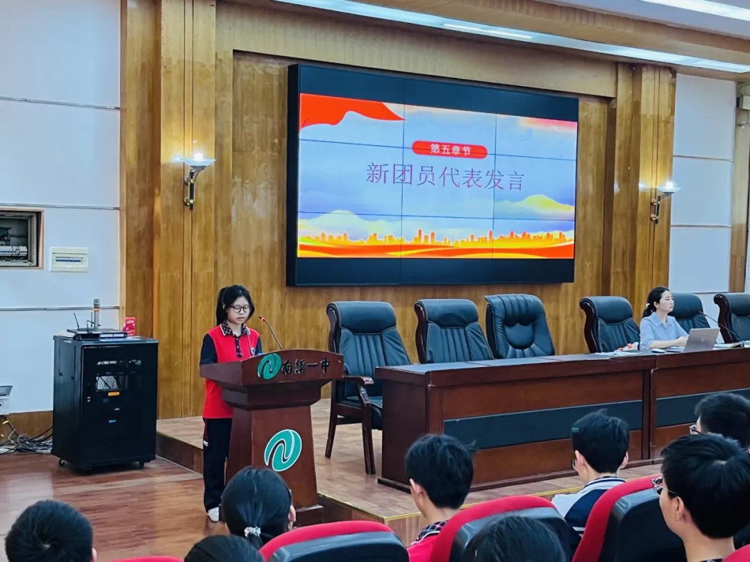 主持人鄭重宣讀新團(tuán)員名單,經(jīng)過(guò)前期考察、團(tuán)校培訓(xùn)、團(tuán)員考核等一系列流程,優(yōu)秀同學(xué)脫穎而出,光榮加入共青團(tuán)。