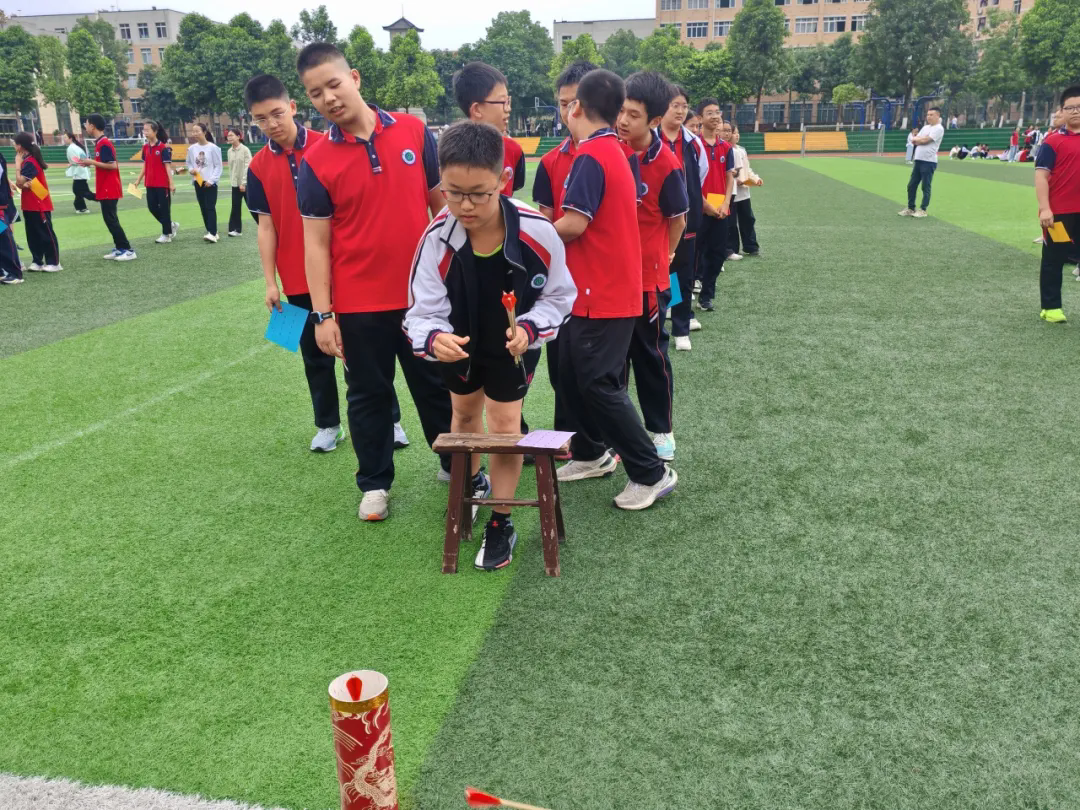 此外,“舞動(dòng)青春”“盲人畫象”“翻山越嶺”等十余項(xiàng)趣味游戲同樣精彩紛呈。同學(xué)們?cè)凇胺皆綆X”中用巧勁吹動(dòng)乒乓球,在“鹿角套圈”中精準(zhǔn)投擲,在“夾書競(jìng)走”中挑戰(zhàn)平衡極限……每一次成功挑戰(zhàn)后的歡呼,每一個(gè)失敗后不氣餒的笑容,都成為活動(dòng)中最動(dòng)人的風(fēng)景。