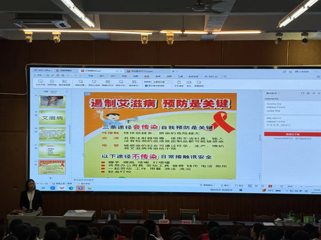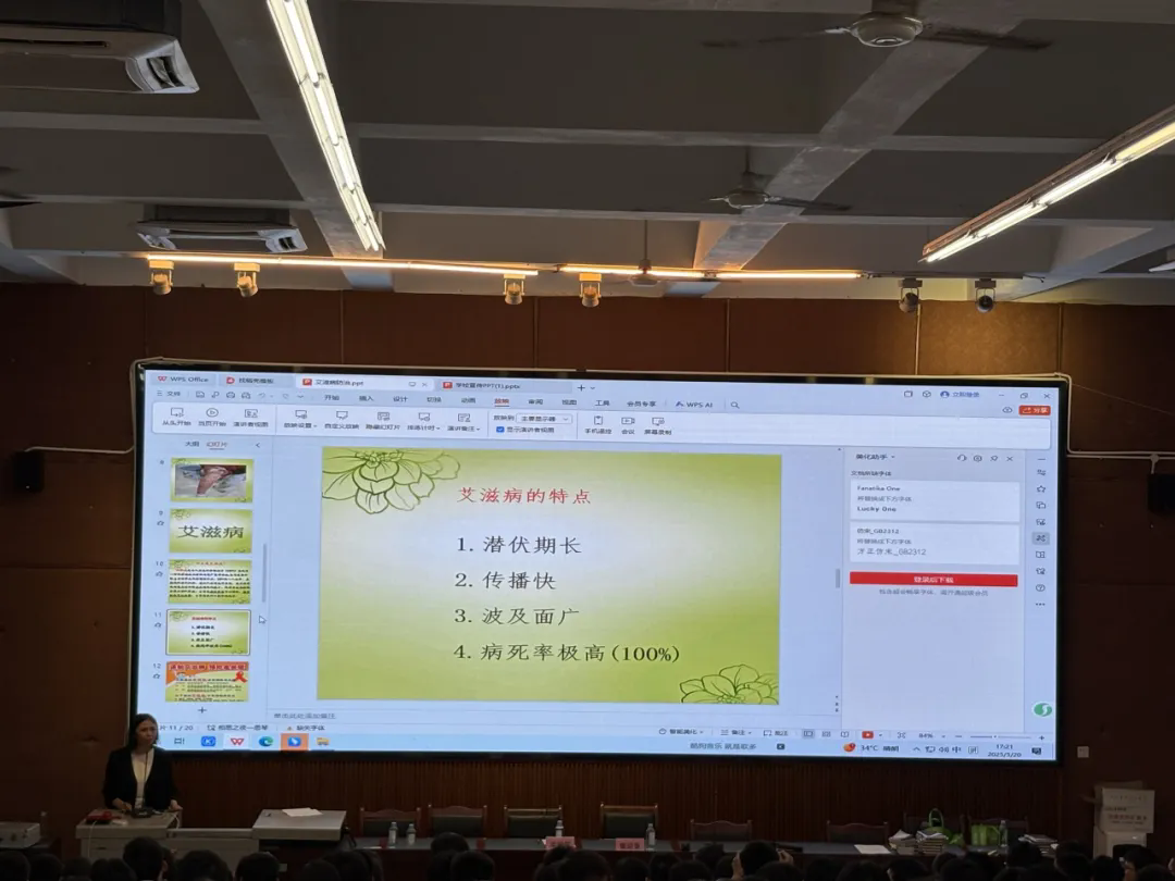 講座伊始,梁婉迪醫(yī)生通過一組觸目驚心的數(shù)據(jù),向同學(xué)們展示了當(dāng)前我國艾滋病防控的嚴(yán)峻形勢。她深入淺出地講解了艾滋病的三種傳播途徑,特別強調(diào)"日常接觸不會傳播艾滋病"的科學(xué)認知,呼吁同學(xué)們消除對艾滋病患者的歧視。梁醫(yī)生還結(jié)合青少年特點,重點講解了如何建立健康的交友觀和正確的自我保護意識。