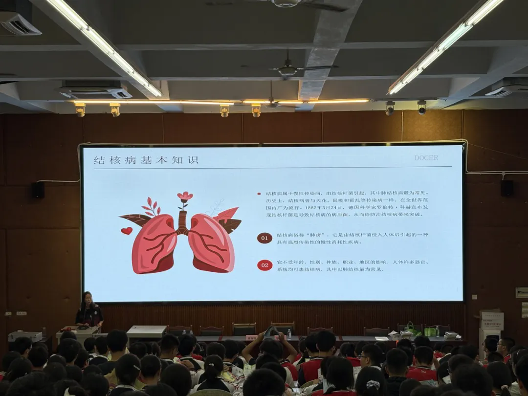 “同學(xué)們知道結(jié)核病有哪些典型癥狀嗎?”曾迎香醫(yī)生以互動提問的方式開始了結(jié)核病防治知識的講解。她通過生動的案例,詳細介紹了結(jié)核病的傳播特點、早期癥狀和規(guī)范治療的重要性。針對學(xué)校這一特殊場所,曾醫(yī)生特別強調(diào)了教室通風(fēng)、個人衛(wèi)生習(xí)慣養(yǎng)成等預(yù)防措施,并現(xiàn)場演示了正確的咳嗽禮儀。
