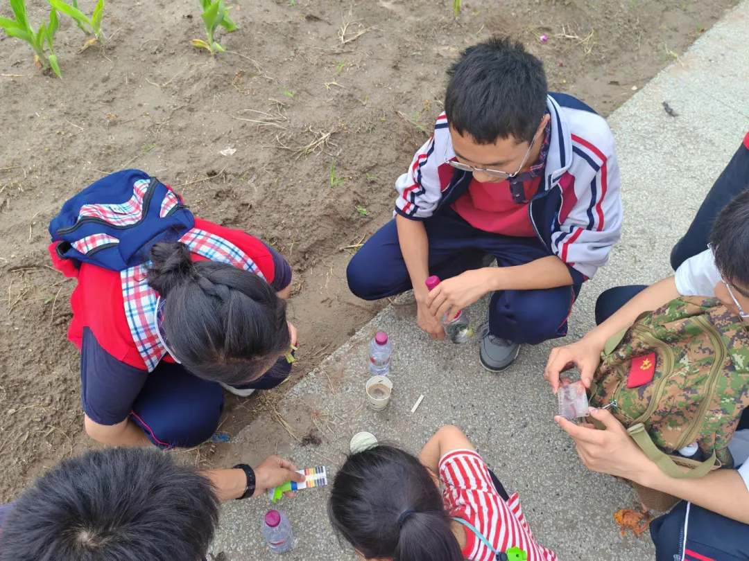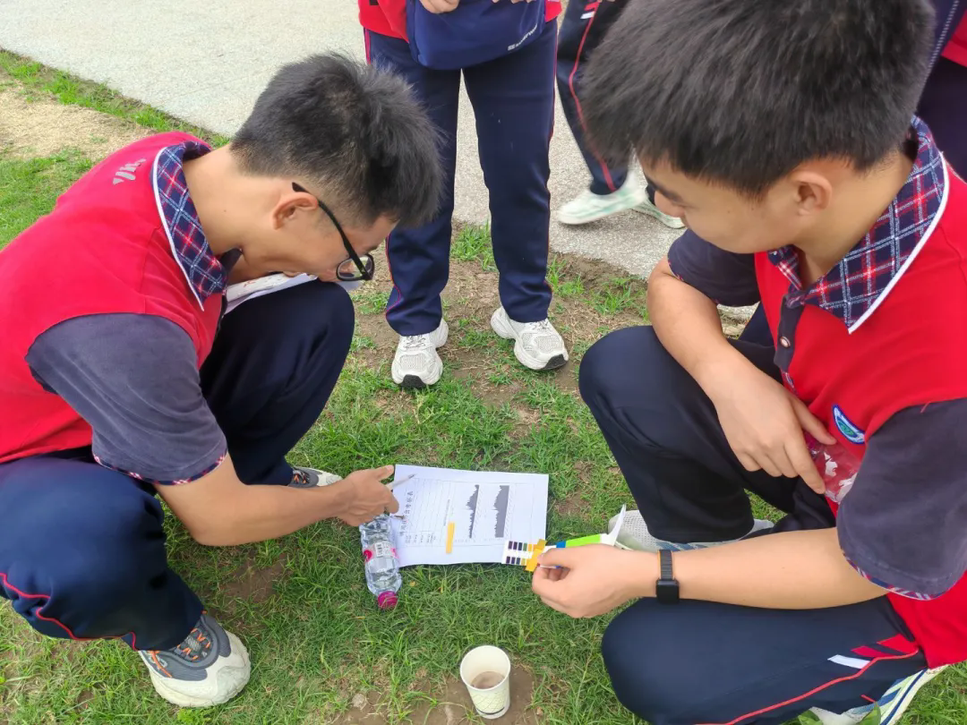 水質(zhì)與土壤檢測(cè)組利用手中簡(jiǎn)易但專業(yè)的工具,開(kāi)展土壤和水質(zhì)酸堿度檢測(cè)工作。在水質(zhì)檢測(cè)環(huán)節(jié),成員們采集不同區(qū)域的水樣,使用 pH 試紙進(jìn)行初步檢測(cè),并詳細(xì)記錄數(shù)據(jù)。在土壤酸堿度檢測(cè)時(shí),成員們深入濕地不同區(qū)域,采集土壤樣本。將樣本放入水杯中,加入水?dāng)嚢杈鶆,待土壤沉淀后,取上層清液進(jìn)行 pH 值檢測(cè)。成員們結(jié)合課堂知識(shí),分析人類活動(dòng)對(duì)濕地水質(zhì)、土壤的影響?傮w來(lái)看,長(zhǎng)江沿岸水質(zhì)和土壤pH值為7,總體上反映了該區(qū)域水圖環(huán)境處于較為良好的中性狀態(tài)。