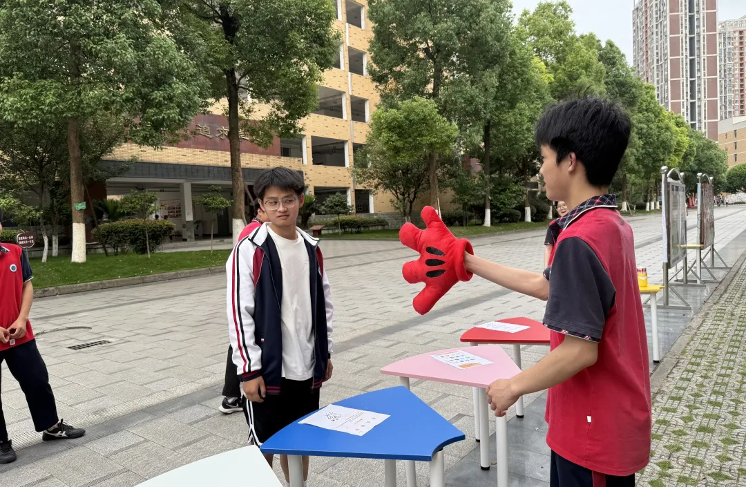 而最令人期待的當(dāng)屬5月23日的心理游園會。踏入游園會現(xiàn)場,熱情與活力瞬間將你包圍!共繪笑臉墻變身 “快樂制造機(jī)”,畫筆在手中跳躍,同學(xué)們用繽紛色彩勾勒出燦爛笑容,每一筆都是積極情緒的傳遞,不一會兒,整面墻都洋溢著治愈系的快樂能量,仿佛能驅(qū)散所有陰霾!拔医o自己點(diǎn)個(gè)贊” 簽到墻前更是熱鬧非凡,大家紛紛寫下鼓勵自己的話語,“今天也要閃閃發(fā)光”“我超棒的”,一句句自信宣言貼滿墻面,讓每個(gè)人都能在字里行間收獲滿滿的自我認(rèn)同感。