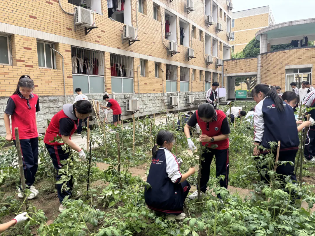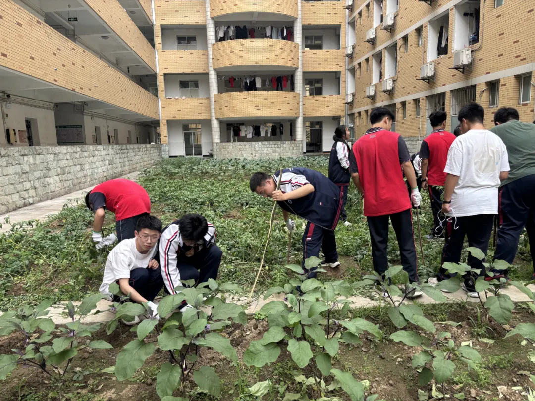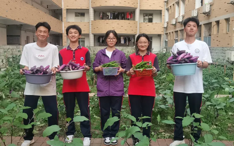 從春日破土到盛夏繁盛,這片勞動基地始終活躍著高2023級同學們忙碌的身影。翻地、種苗、除草、澆水、搭架……每一株幼苗的成長,都浸透著他們辛勤的汗水。當親手栽下的茄子掛上紫袍,番茄由青轉(zhuǎn)紅,辣椒掛滿枝頭,白菜包裹緊實,豐收的喜悅瞬間沖淡了所有辛勞。這不僅是一次簡單的種植體驗,更是對“粒粒皆辛苦”最真切的體悟。
