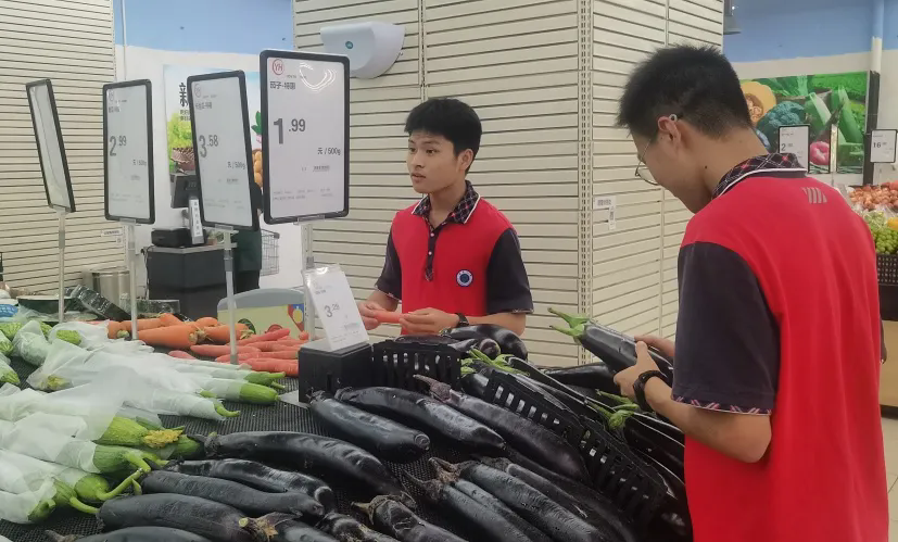 收獲的喜悅之后,是面向市場的學習挑戰(zhàn)。同學們并未急于銷售,而是帶著自己的“成果”走進超市進行市場調(diào)研。他們認真記錄同類蔬菜的價格區(qū)間,細致觀察包裝與陳列方式;氐叫@后,結(jié)合調(diào)研數(shù)據(jù)與成本投入,同學們反復討論定價策略、設計宣傳標語、規(guī)劃攤位布置。從課堂到實踐基地,再到真實的市場環(huán)境,知識在實踐鏈條中真正內(nèi)化為能力。