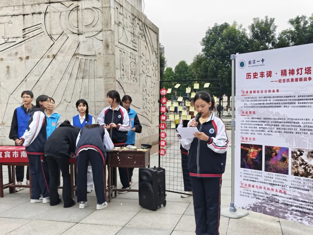 1950年10月,中國人民志愿軍肩負“保家衛(wèi)國”的使命,雄赳赳、氣昂昂跨過鴨綠江,在朝鮮戰(zhàn)場上譜寫了一曲曲氣壯山河的英雄贊歌。為紀念中國人民志愿軍抗美援朝出國作戰(zhàn)75周年,傳承偉大抗美援朝精神,2025年10月25日(抗美援朝紀念日),共青團南溪一中在文淵廣場組織開展“緬懷英烈?砥礪前行”主題德育微活動,以歷史為筆、以精神為炬,引導全校師生重溫崢嶸歲月,厚植家國情懷。