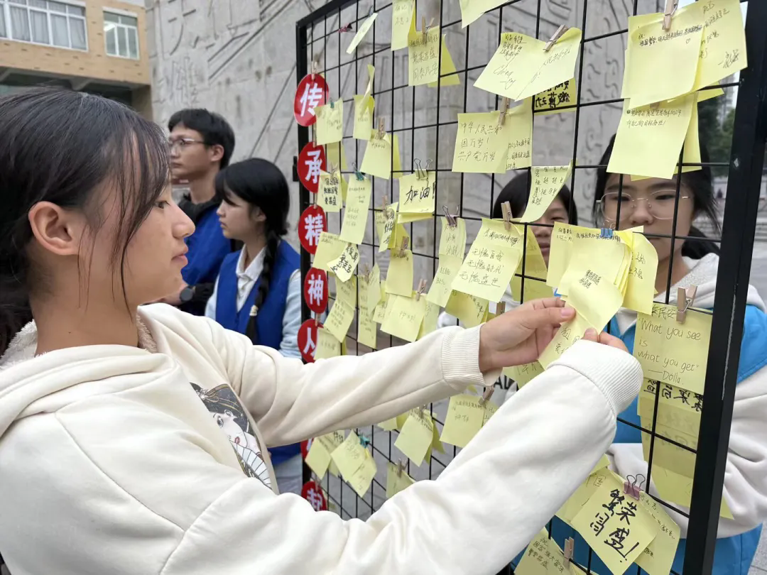 “傳承精神?從我做起”展板則搭建起歷史與當下的橋梁。師生們拿起筆,在便利貼上寫下“課堂專注聽講,是對責任的堅守”“節(jié)約每一粒糧,是對先輩的致敬”等承諾,貼滿象征精神傳承的“誓言樹”;鮮紅的“抗美援朝鑄就鋼鐵長城,薪火相傳肩負時代使命”橫幅前,大家鄭重簽下姓名,一筆一劃皆是對英雄的追思、對使命的承諾。