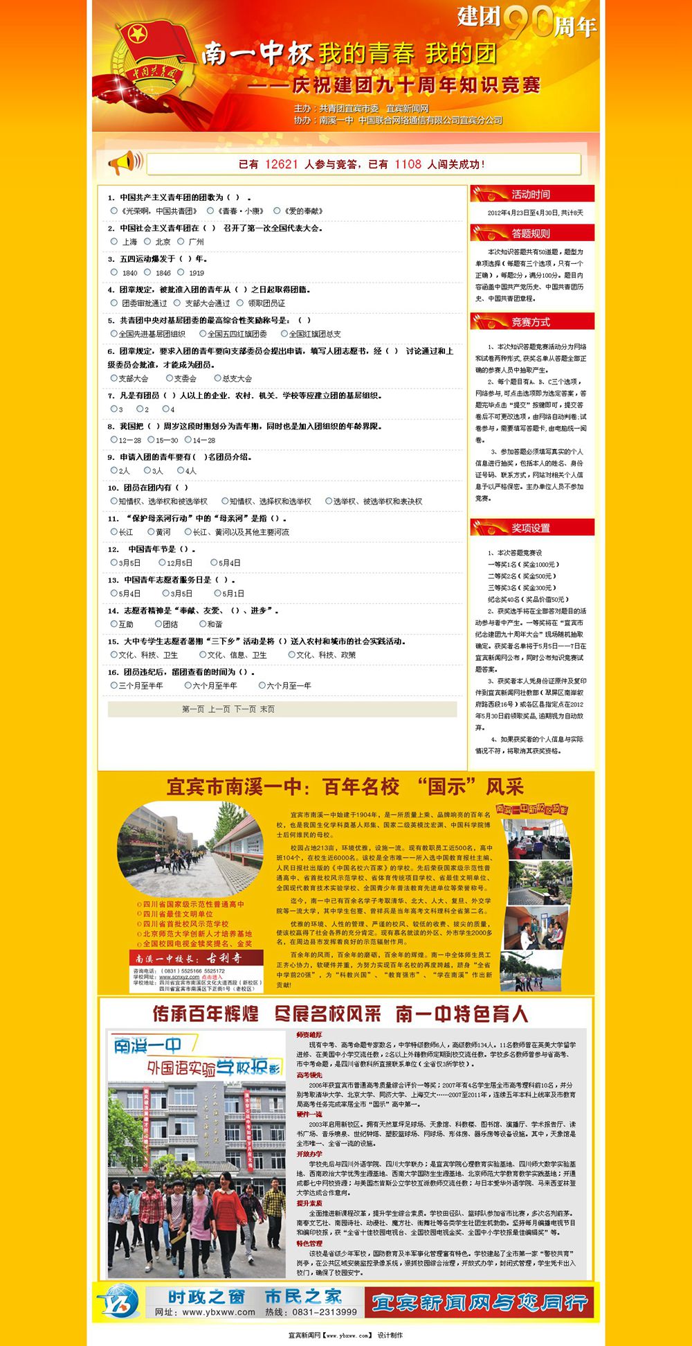 我的青春 我的團(tuán)——慶祝建團(tuán)九十周年知識(shí)競賽--宜賓新聞網(wǎng)