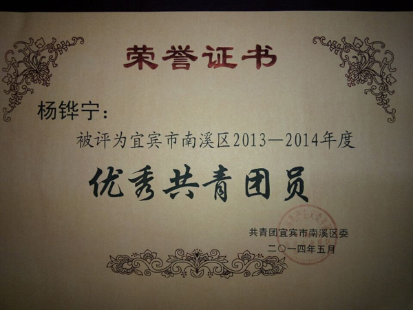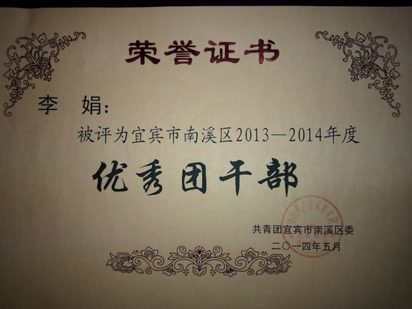 2012級2班劉世霞(班主任陳景儒)被評為市優(yōu)秀共青團(tuán)員;2013級8班楊鏵寧(班主任李明先)、2013級19班劉紹連(班主任楊世欽)被評為南溪區(qū)優(yōu)秀共青團(tuán)員;徐松濤、李娟兩位老師被評為南溪區(qū)優(yōu)秀團(tuán)干部。