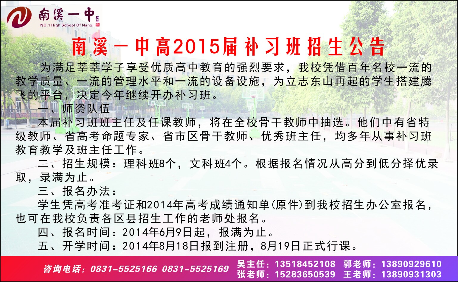 南溪一中2014年補(bǔ)習(xí)班招生簡(jiǎn)章