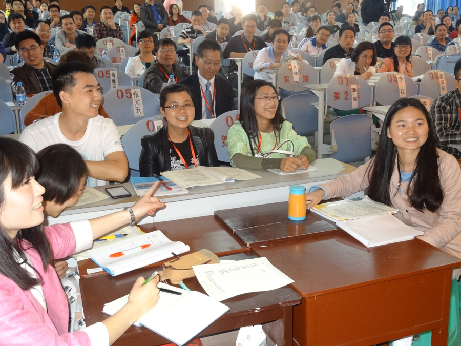樂老師以大量生動詳實(shí)的事例、幽默風(fēng)趣的語言對課改形勢、如何構(gòu)建高效課堂等做了全面的闡述。隨后,由24為老師組建的臨時班級的體驗(yàn)式培訓(xùn)掀起了報告會的高潮。在模擬課堂上,樂老師以臨時班級為例,直觀真實(shí)的指導(dǎo)大家展示了高效課堂中學(xué)習(xí)小組的創(chuàng)建和小組合作學(xué)習(xí)六步循環(huán)法,示范了學(xué)案導(dǎo)學(xué)法的“三段六步”授課流程,老師們踴躍參與,積極表現(xiàn),在體驗(yàn)中對高效的課堂教學(xué)和課堂教學(xué)理念有了更為深刻的認(rèn)識。