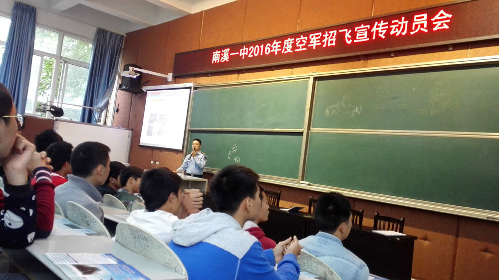 近年來,南溪一中向空軍航空大學輸送多名飛行員,學校堅持把空軍招飛工作作為講政治、顧大局和雙擁工作的重要內容,以實際行動支持國防和軍隊建設。校行政、年級組和班主任密切配合,積極宣傳招飛政策,并在充分宣傳發(fā)動的基礎上,認真組織預選報名、初檢上站等工作,鼓勵、動員優(yōu)秀學生參加空軍飛行學員選拔。招飛工作,也成為了我校滲透社會主義核心價值觀教育、國防教育和愛國主義教育的新契機、新平臺、新途徑。