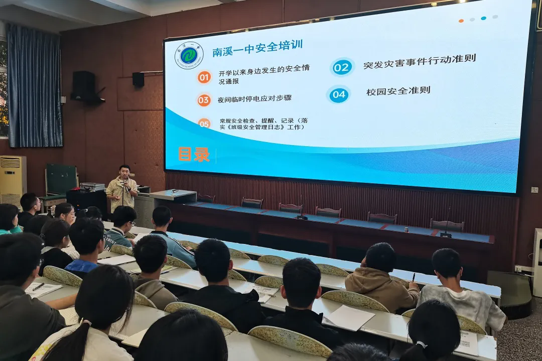 為進(jìn)一步提升全校各班安全委員的減災(zāi)意識、自救互救能力及工作業(yè)務(wù)能力,更好地發(fā)揮好班級安全最小單元的安全宣傳提醒、檢查發(fā)現(xiàn)、報告處置功能。南溪一中安保處于10月17日,組織開展了2025年秋期全校安全委員培訓(xùn)會。本次培訓(xùn)由李杰老師主講,內(nèi)容涵蓋交通安全、突發(fā)災(zāi)害應(yīng)對、夜間停電處置、校園日常安全規(guī)范以及《班級安全管理日志》填寫等多個方面,并結(jié)合真實案例,深入淺出地講解了各類安全隱患的識別與應(yīng)對策略,特別強(qiáng)調(diào)安全委員在班級中的“前哨”和“助手”作用。